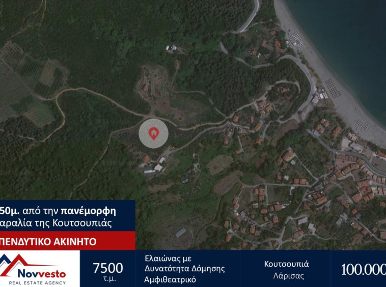 The settlement of Koutsoupia is built amphitheatrically, on a slope of Kissavos and next to the sea, in a verdant area. It is located between Paliouria and Kokkino Nero and is 58 and 17 km from Larissa and Agiokampos. respectively. The settlement is separated by two streams and is distinguished by the water sources that exist. The beach of Koutsoupia is picturesque, with fine sand and pebbles.